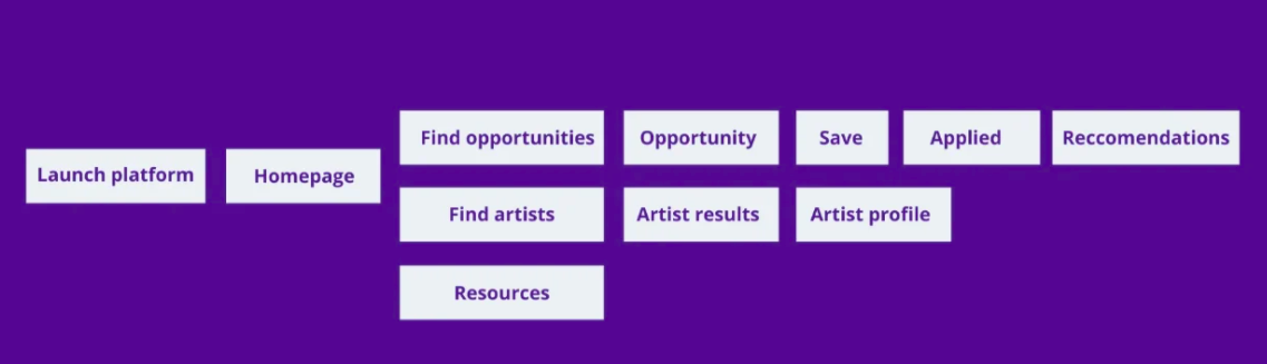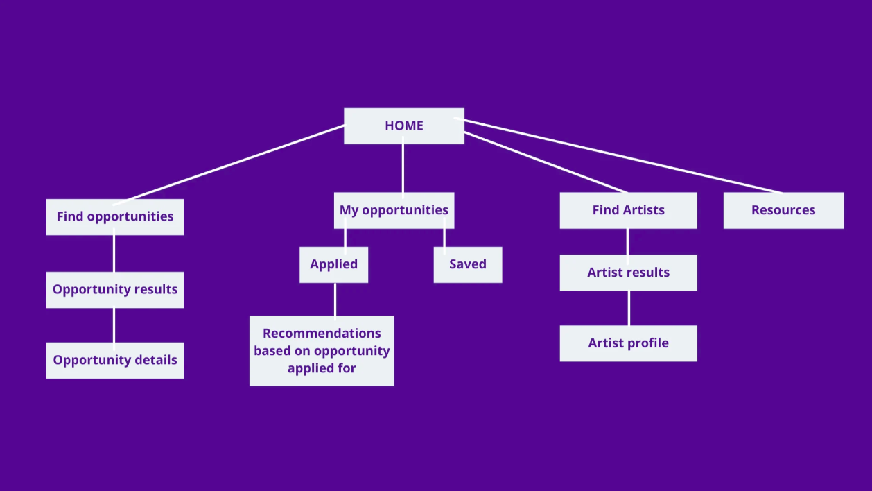 - A search function with filters to make it easier for emerging artists to find suitable opportunities in one place, while finding other artists and collaborators that they were more likely to maintain a relationship with