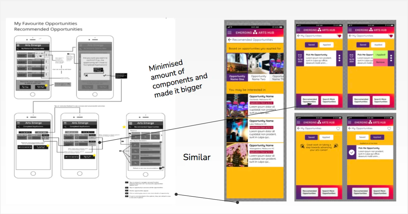 - A recommendations function for artists to discover opportunities, based on those they have already applied for. This is so that artists won't need as much stamina to search for suitable opportunities