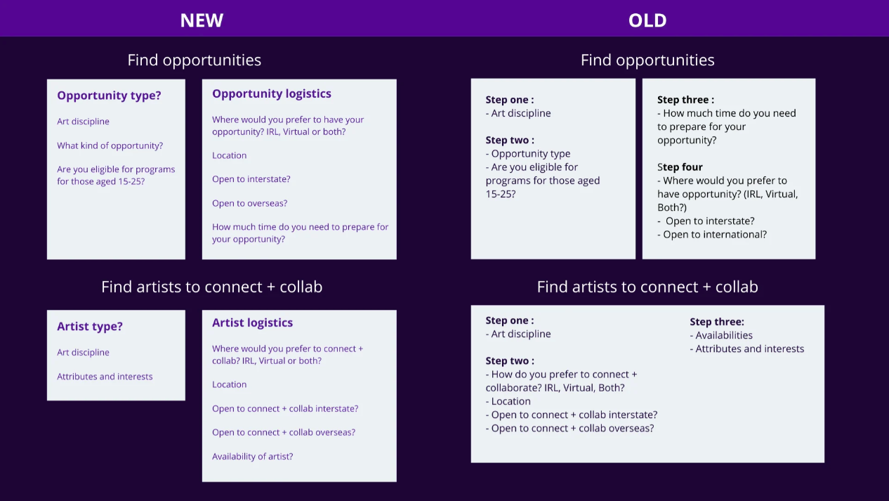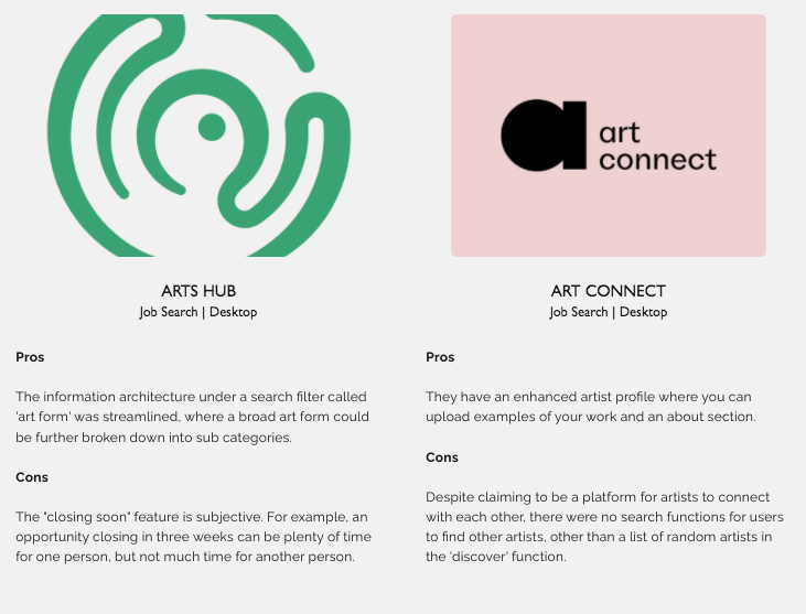 - Artists browse through various online search platforms (ArtsHub, Seek), newsletters, Instagram and Facebook pages to find and access opportunities. However, 16 out of 27 survey responses mentioned that looking for opportunities everywhere was time consuming and overwhelming, where many interviewees mentioned that having everything in one place would be useful for them.