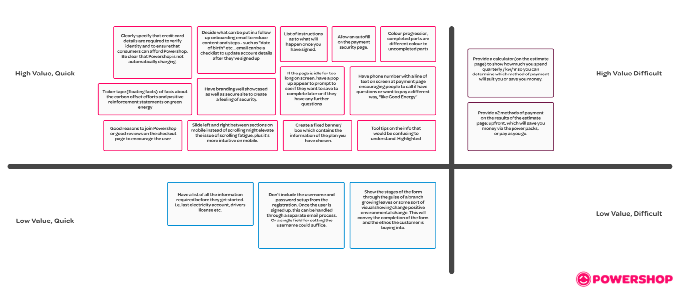 - With cost being the number one deterrent for energy consumers to commit to an energy provider (according to the survey), Powershop's vague cost estimates meant that user interviewees felt concerned that they would end up paying more than usual. Furthermore, interviewees thought that the language of the form implied that they were automatically going to be charged once they signed up.