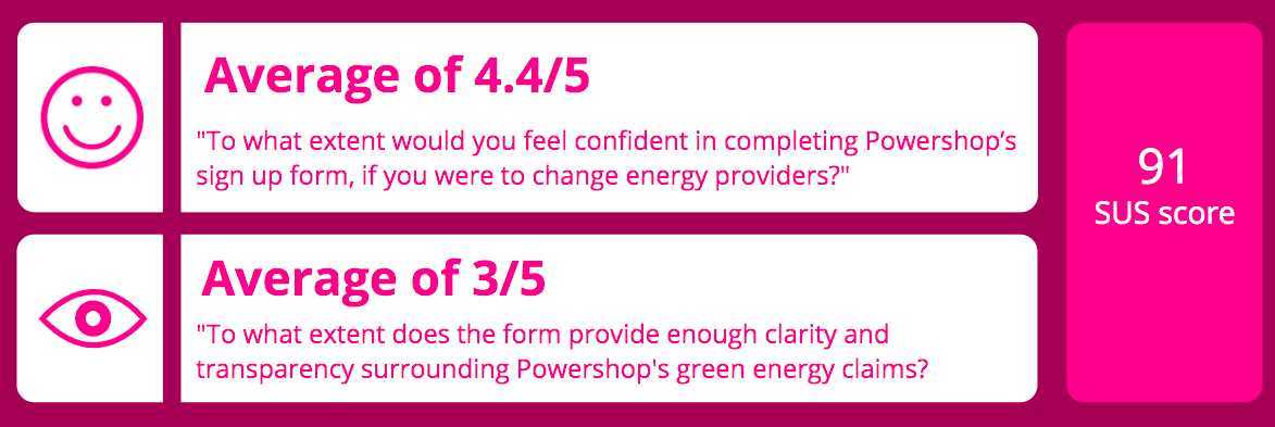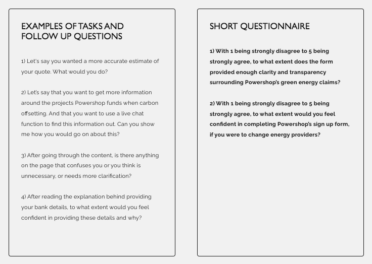 - 8 user interviews (users were also invited to try out Powershop's sign up form)